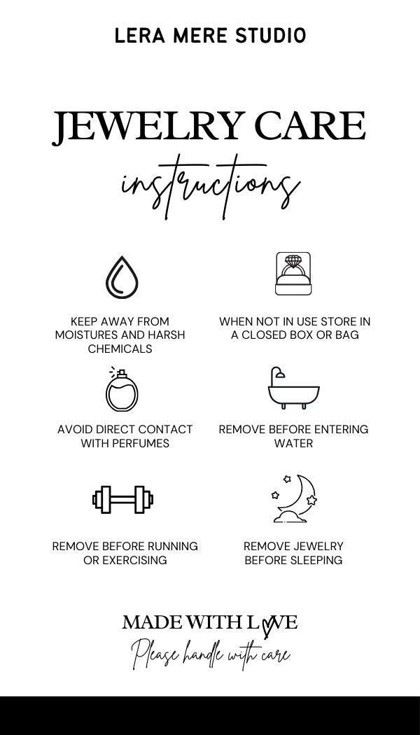 To keep your jewelry golden, recommend to you avoid contact with any kind of moisture (summer dips, showers) and cosmetics (lotions, hairspray, perfumes) remove them during sleep in or during exercise. Please store your jewelry in a dry room in and in pouch.